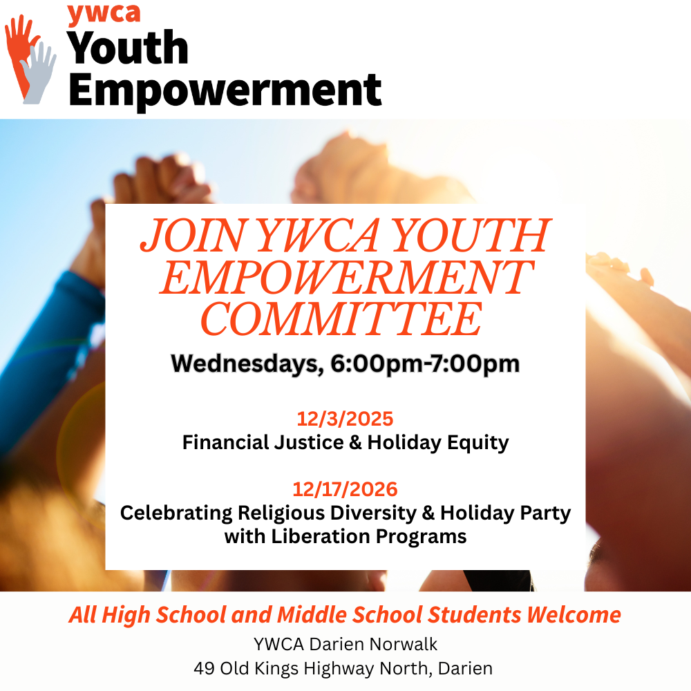 Watch Our 2025 Year in Review https://ywcadn.org/wp-content/uploads/2025/11/2025-Year-in-Review-2.mp4 Explore our Volunteer Opportunities LEARN MORE Join YWCA Darien/Norwalk JOIN TODAY Explore Our Wide Range of Clubs GET INVOLVED UPCOMING EVENTS learn more and registerlearn more and registerlearn more and registerlearn more and registerlearn more and registerlearn more and register View All Events FOLLOW US ✨ @darienlibrary’s Lit Tree Lane is back! ✨ The Y Happy Thanksgiving from your friends at the YWCA! We’re so close to a big milestone… only a few foll Our November newsletter went out on Wednesday — di What a year! ✨ Your support brought more programs 📚 How do kids really learn to read? Join us for a ELIMINATING RACISM, EMPOWERING WOMEN, AND ENSURING PEACE, JUSTICE, FREEDOM AND DIGNITY FOR ALL #ONAMISSION DONATE TODAY Make a difference and join us in our mission to empower women and eliminate racism.