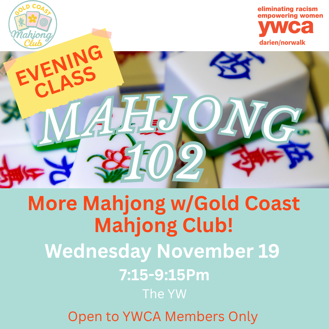 Continue to learn Mahjong with Gold Coast Mahjong Club and register for MAHJ 102.   You must be a YWCA member to register.  LOGIN or BECOME A MEMBER today!
