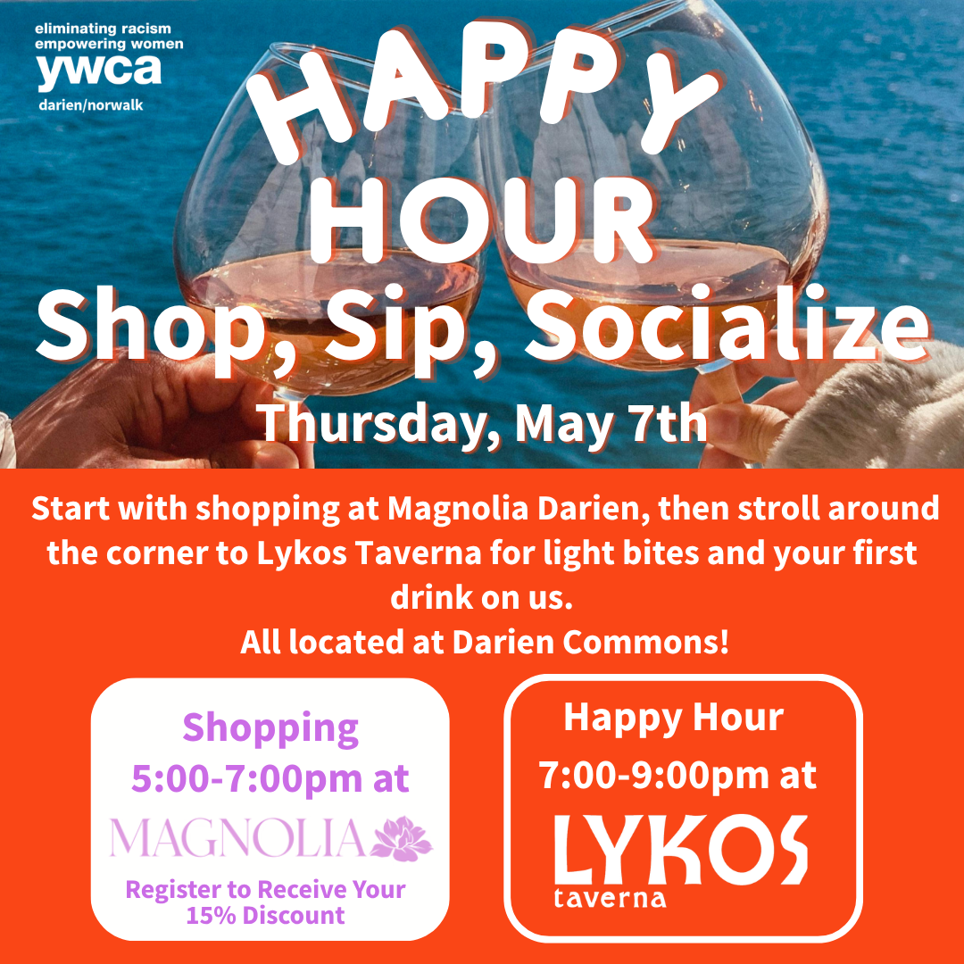 Start with shopping at Magnolia Darien, then join us at Lykos Taverna for light bites and your first drink, courtesy of the YWCA.